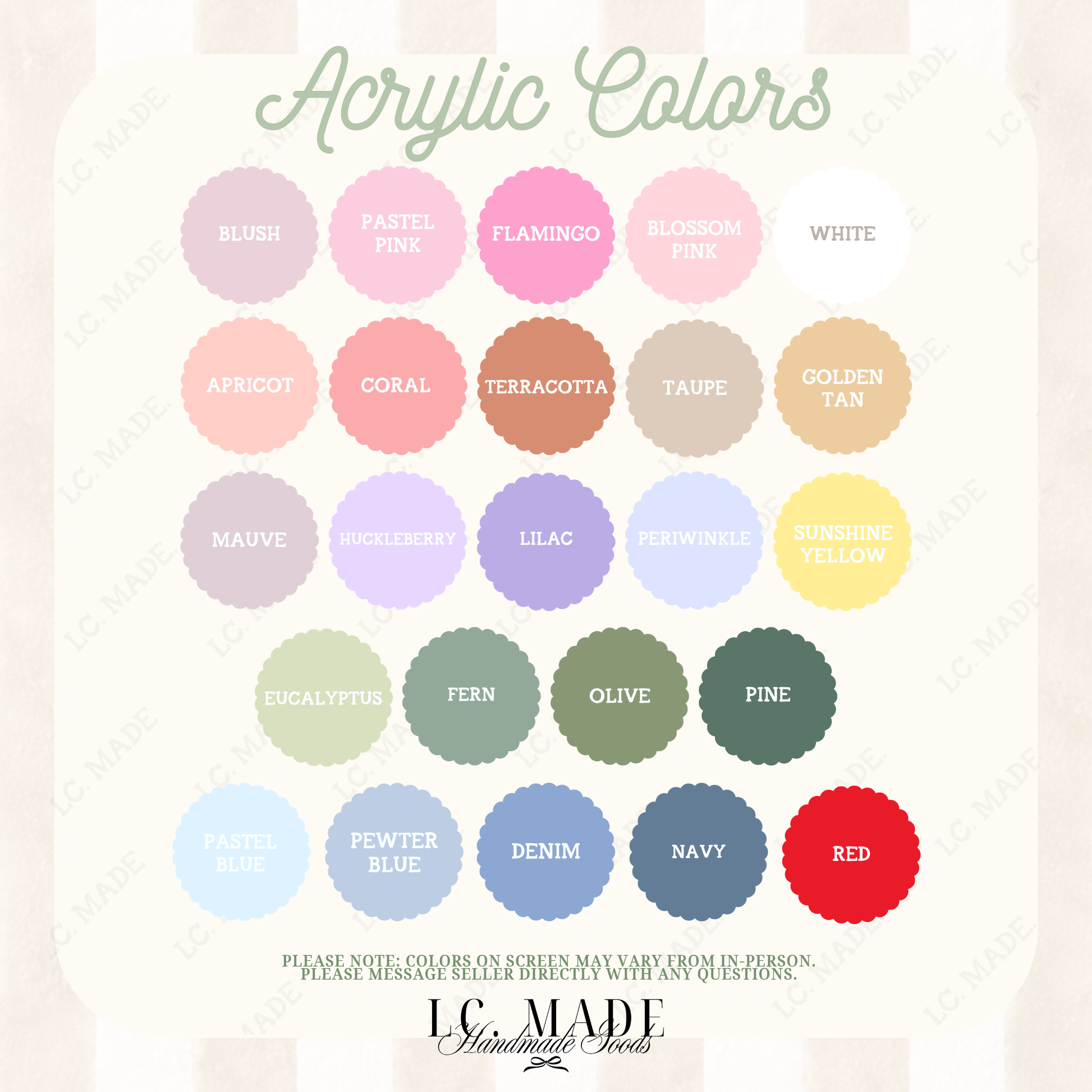 ⢠Designed and handmade with care by LC. Made